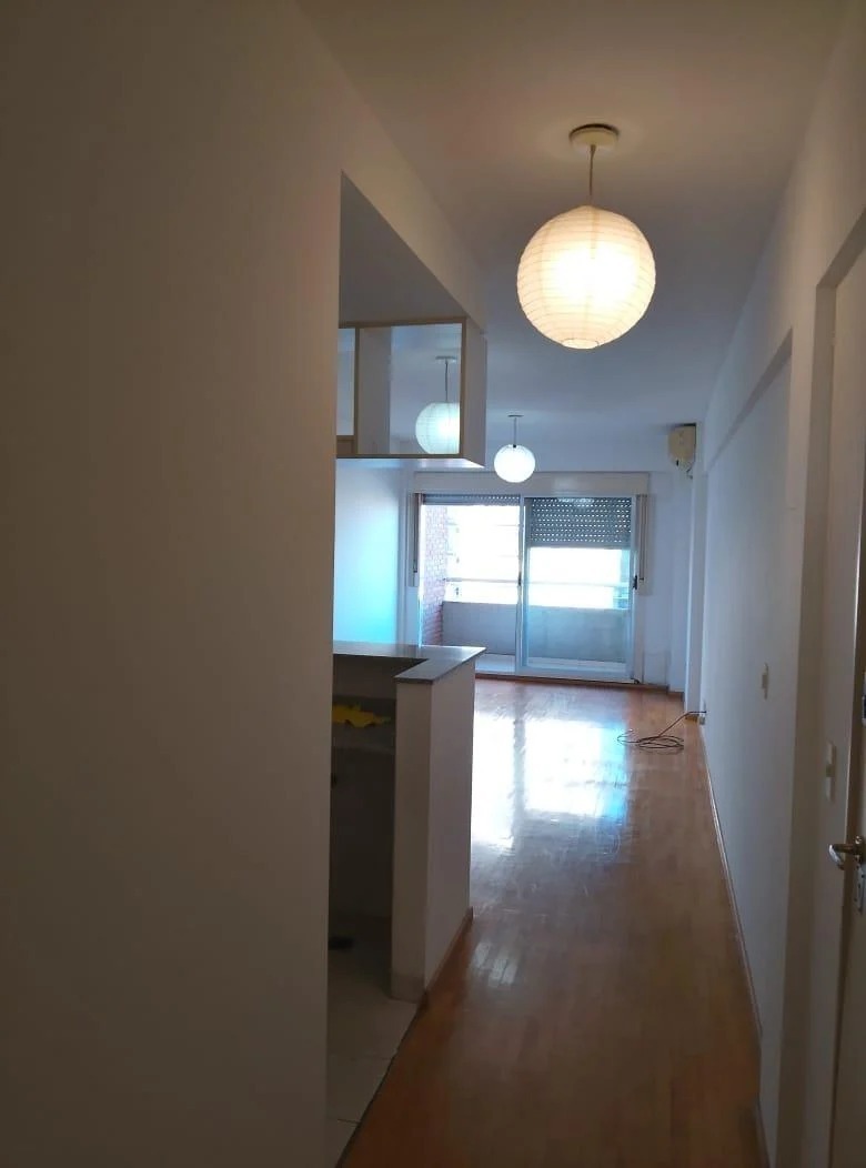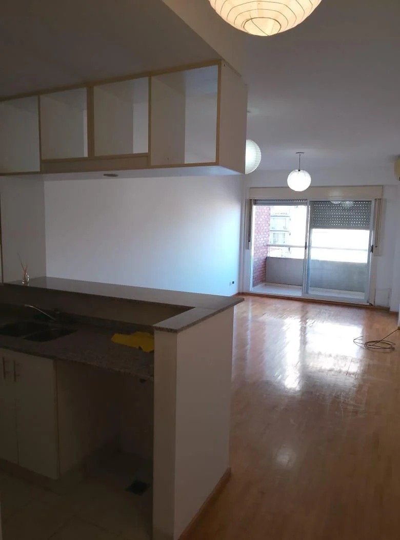 Características del departamento: - Superficie total: aproximadamente 35,7 m² (32,59 m² cubiertos). - Luminoso y con balcón al frente, ideal para disfrutar del aire libre. - Cocina integrada con barra desayunador, mueble bajo mesada y alacena con extractor de humos. - Baño completo con vanitory y grifería en excelente estado. - Placard con frente espejado e interior completo. - Puerta de entrada blindada para mayor seguridad.